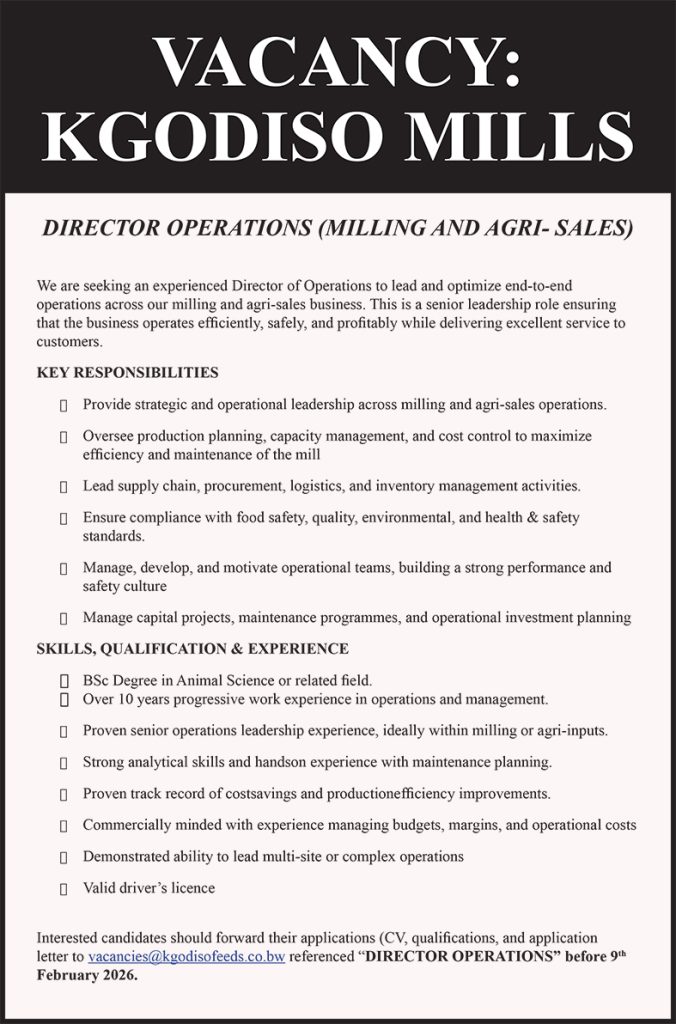 KGODISO MILLS VACANCY – DIRECTOR OPERATIONS (MILLING AND AGRI- SALES)
