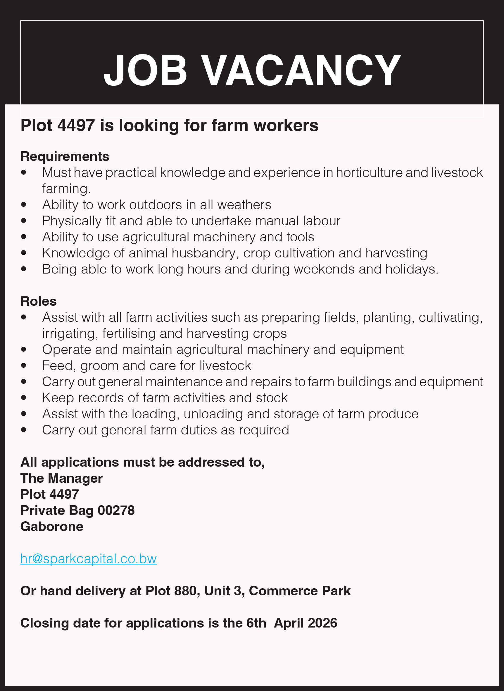 • SPARK CAPITAL VACANCY – FARM WORKERSMarch 23, 2026
